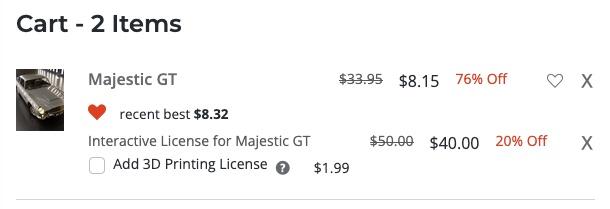 Is it normal for licence to get only a 20% discount while the item get a 76% discount (70% discount and the 20% extra discount due to having a gold star). The item is from the 70 % selection, which is supposed to apply to licence according to the icon: https://www.daz3d.com/recent-madness-mode-artists#index=0&order=popular^1&filtered=1