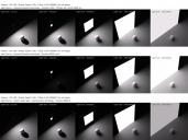 Finally, not all of the luminaires used in D|S are measured the same. The distant light, which approximates parallel rays from an infinitely distant source, is measured as light incident on the scene, not light intensity at the source. Noon sun is about 9-12 lumens per square centimeter. Unforunately, the default value in D|S is much, much higher, so people struggle with using this light. Dialing it down to 10 or so solves that.