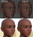 Although I said the values matched, some differences are there. Some of the values on the old figure are "set" but the set value is the default (so the text is black instead of white). On the new figure, for those settings, the default is still zero and thus the text is white. I don't think that should matter. Also, neither figure has face morphs, according to "Currently Used". The only morphs I actually applied myself were head morphs. The base figure is PFX Valeria. I reduced PFX Valeria Head to 33.1% and added Addy Gemma at 74.6%. Still, the lips are different, jaw hangs differently, cheek might be different. With just a couple of head morphs applied, they should be identical.