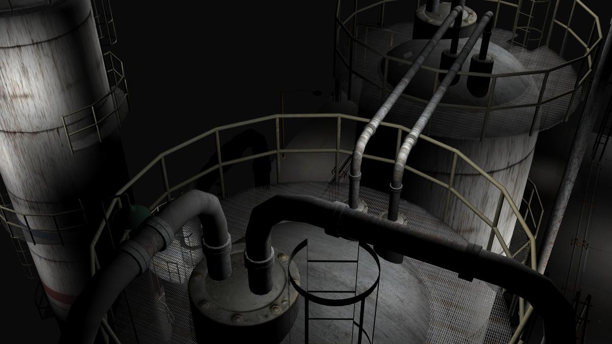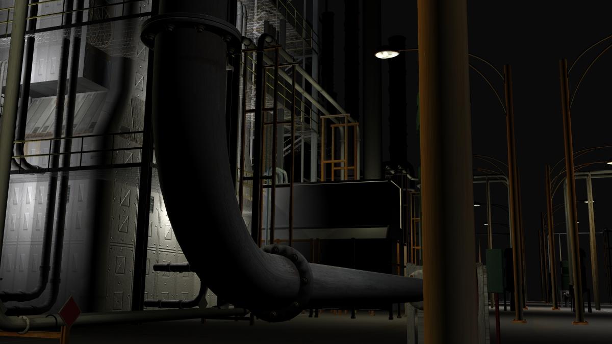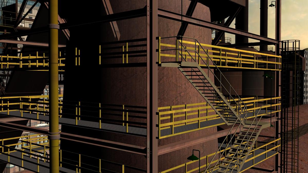 Render 1 is of the full side view of the furnace. Render 2 is a close up of one section, showing a set of steps and platforms that would be great for some type of action scene. Render 3 shows the power lines alone in the Lushlands. All three are 3DL renders.
