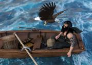 Jack found an eagle friend while exploring the Skull island for his pursuit of hidden treasures.