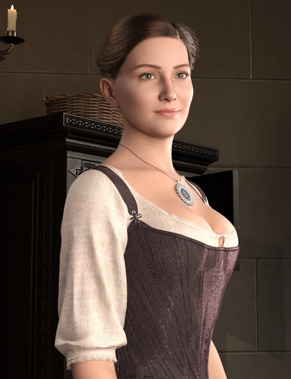 Anyway, on first impression, I'm pretty happy with these things. This is just one of the vignette presets out of the box, with some texture changes from the add-on. As the promo says, the doors, like on this wardrobe, open. The slip and corset didn't give me any undue dForcing issues and are nicely detailed. (I opted against the texture add-on. I might get it later, but stylistically, the colors and designs just weren't my thing.) I borrowed the necklace from the Bryn set, which I picked up the other day when almost all of the CB items could be had for a steal.