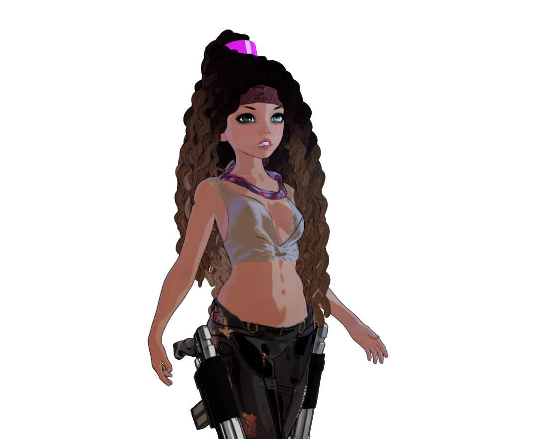 This sequence looks really cool in motion (coming soon) as the torch flame is animated to her drastic movements as she checks her six (Looks back 180). It's also showing the beginning stages of her new Platina Princess Warrior outfit redesign - which is still under development, but will be seen more in this next Creative Cart - briefly.