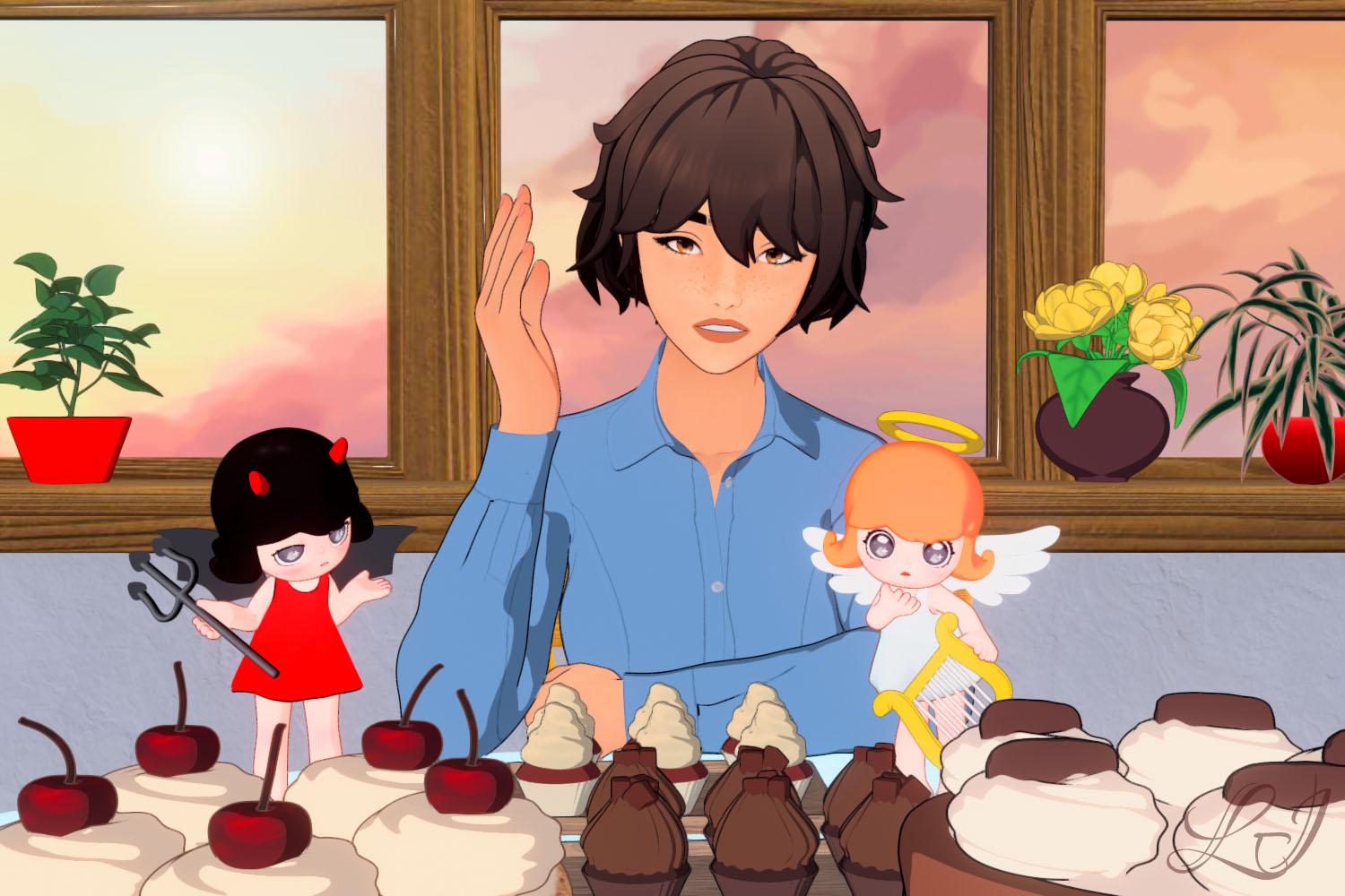 I'm cross-posting this from the DAZ membership contest. Scene: The last few months have been difficult with my sweet-tooth, and Devil MiMi has definitely been winning...devilangel