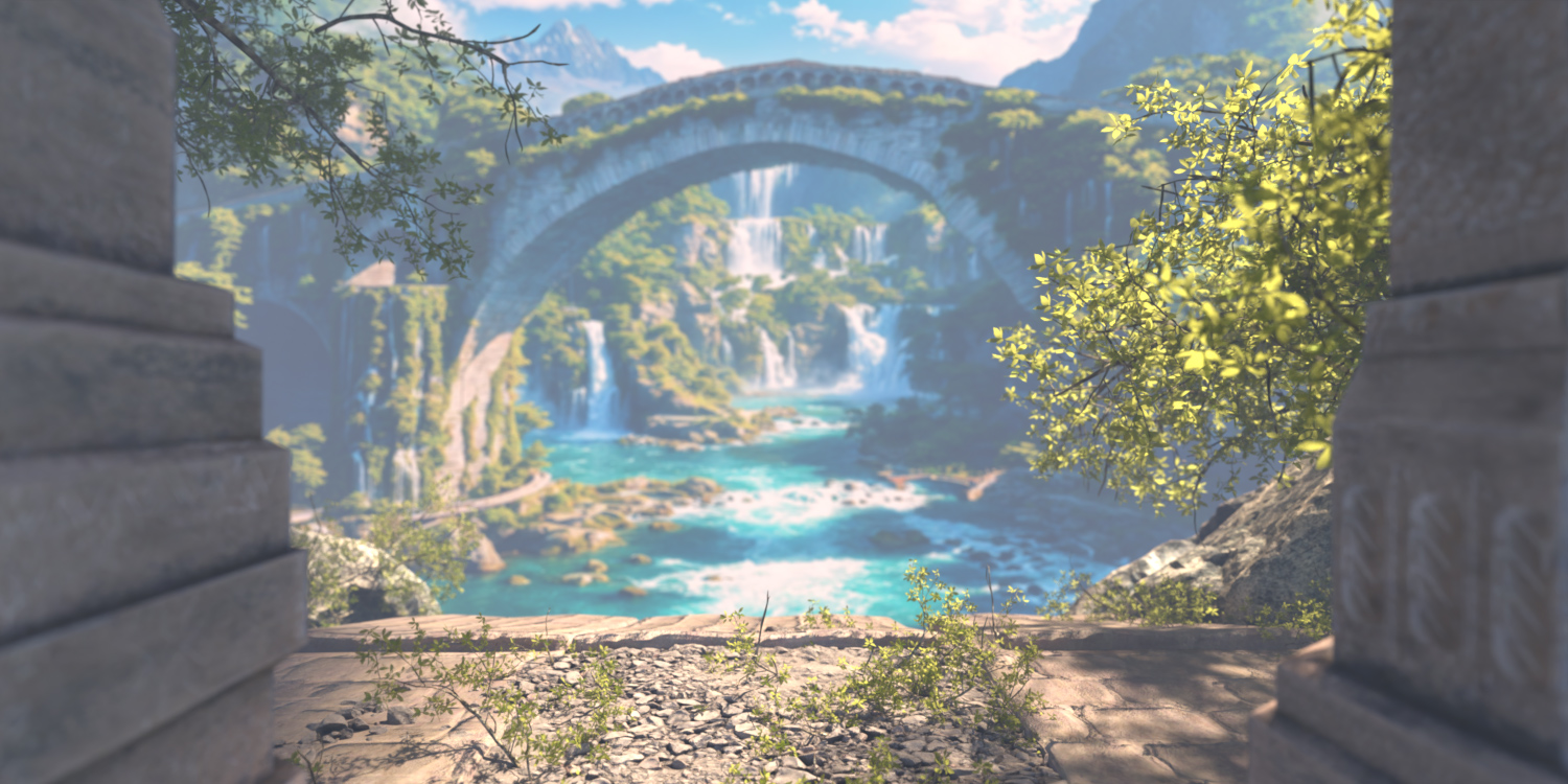 From what I can tell, at least some of the background images look like they were AI-generated as they have issues that make me question the images: the bridge arc is crooked in a way that wouldn't happen in either real life or modelling, light on the mountain doesn't seem to be matching, coming from both sides, especially on the right (it's not the other mountain casting shadow as there's light o the ground between them).