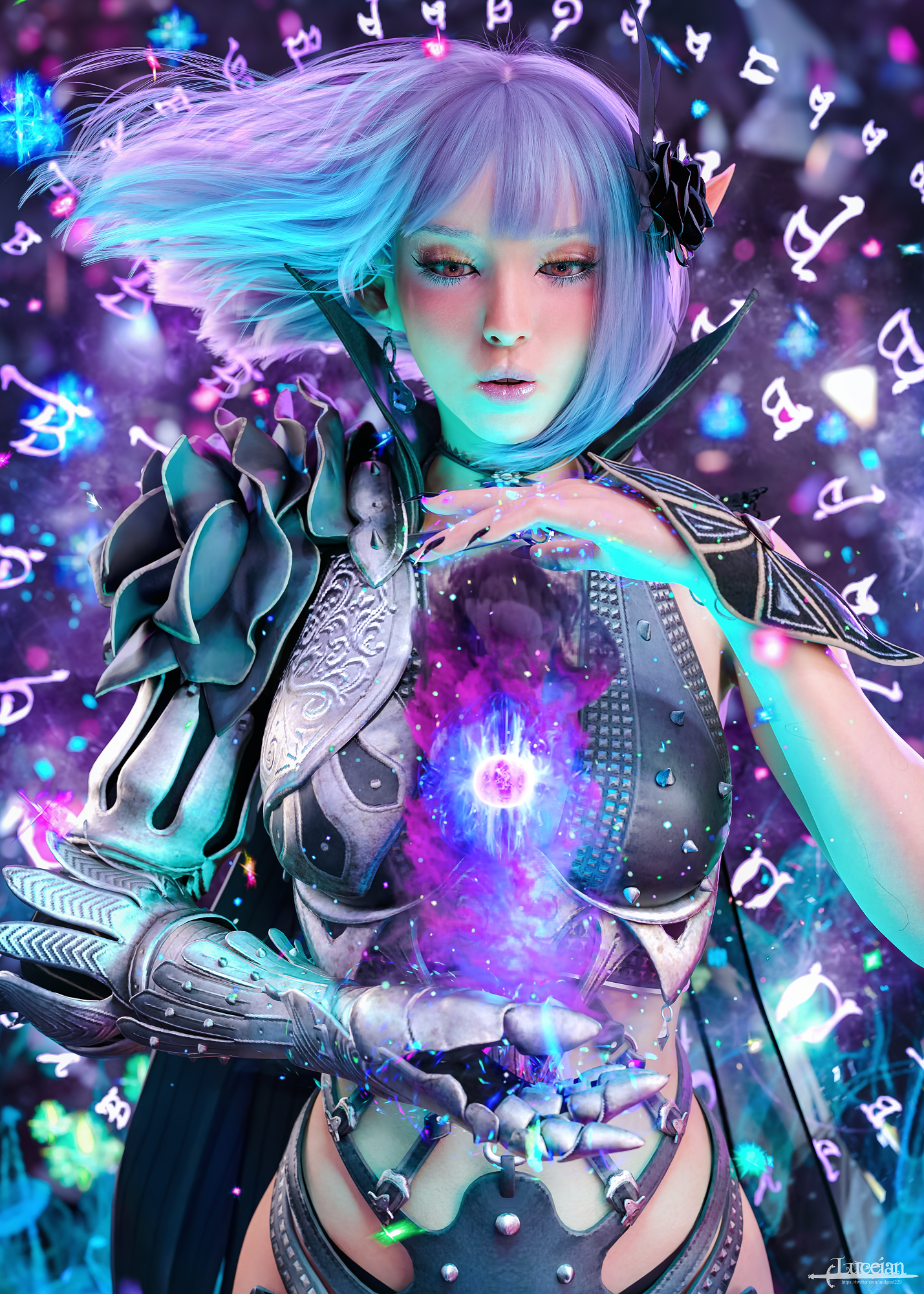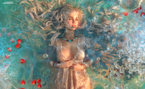 I want hair that makes a statement like this...to be the part of the magic in the art!  I don't want the hair sticking out straight.  I want it literally flowing with curves.  I might have to do it in postwork.