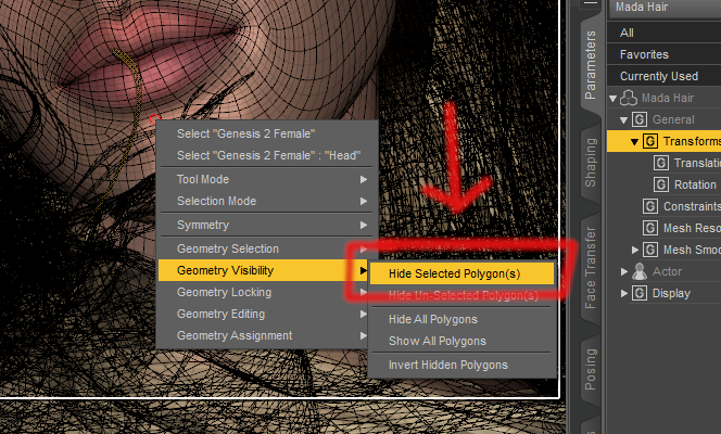 Now right click again in the viewport and choose "Hide Selected Polygon(s)":