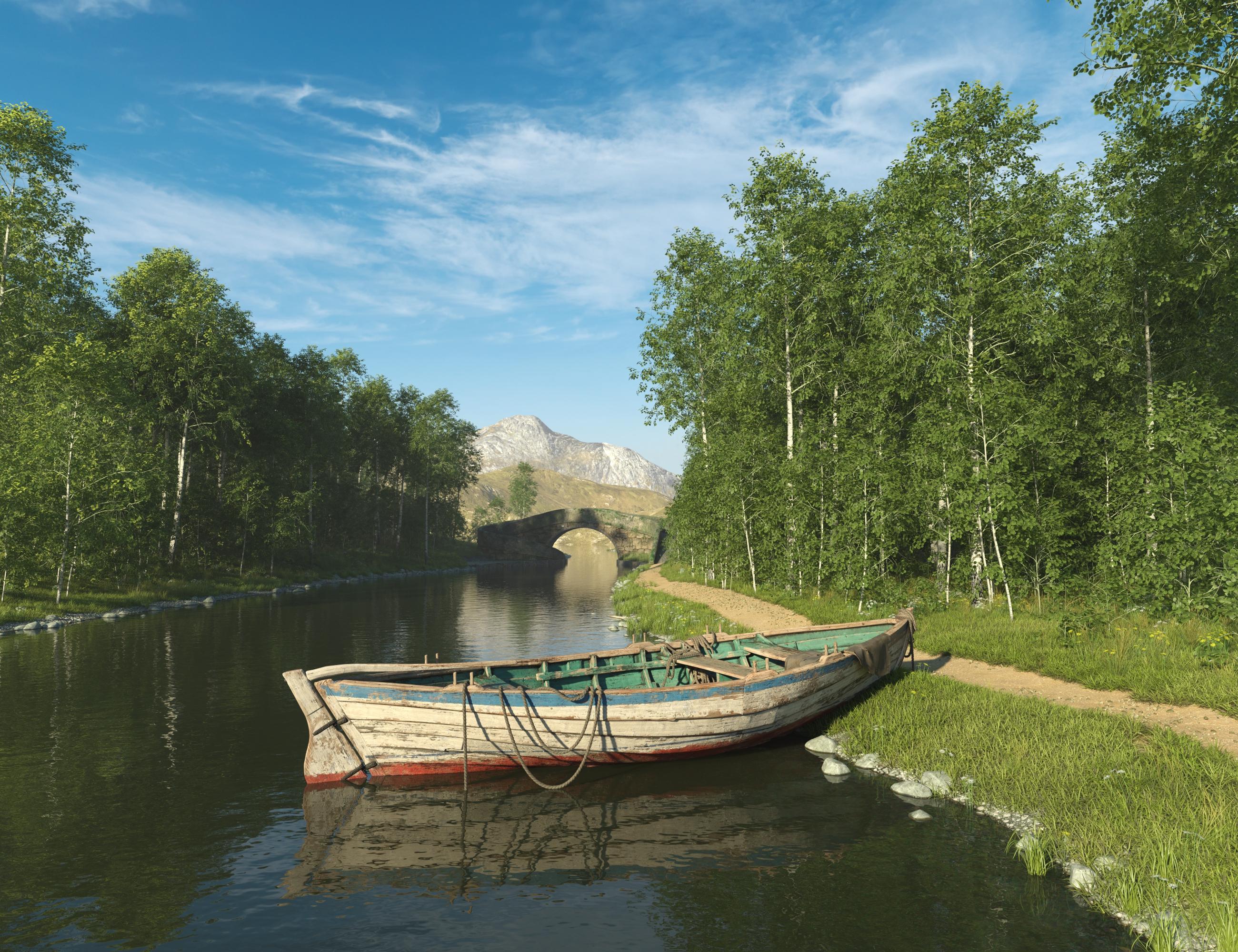 This is Woodlands 01 with Snake Bridge 07. I used the mountains from Highlands for the background and the Highlands afternoon HDRI for the lighting (including the clouds ans sky). There are no foxes or cats here.
