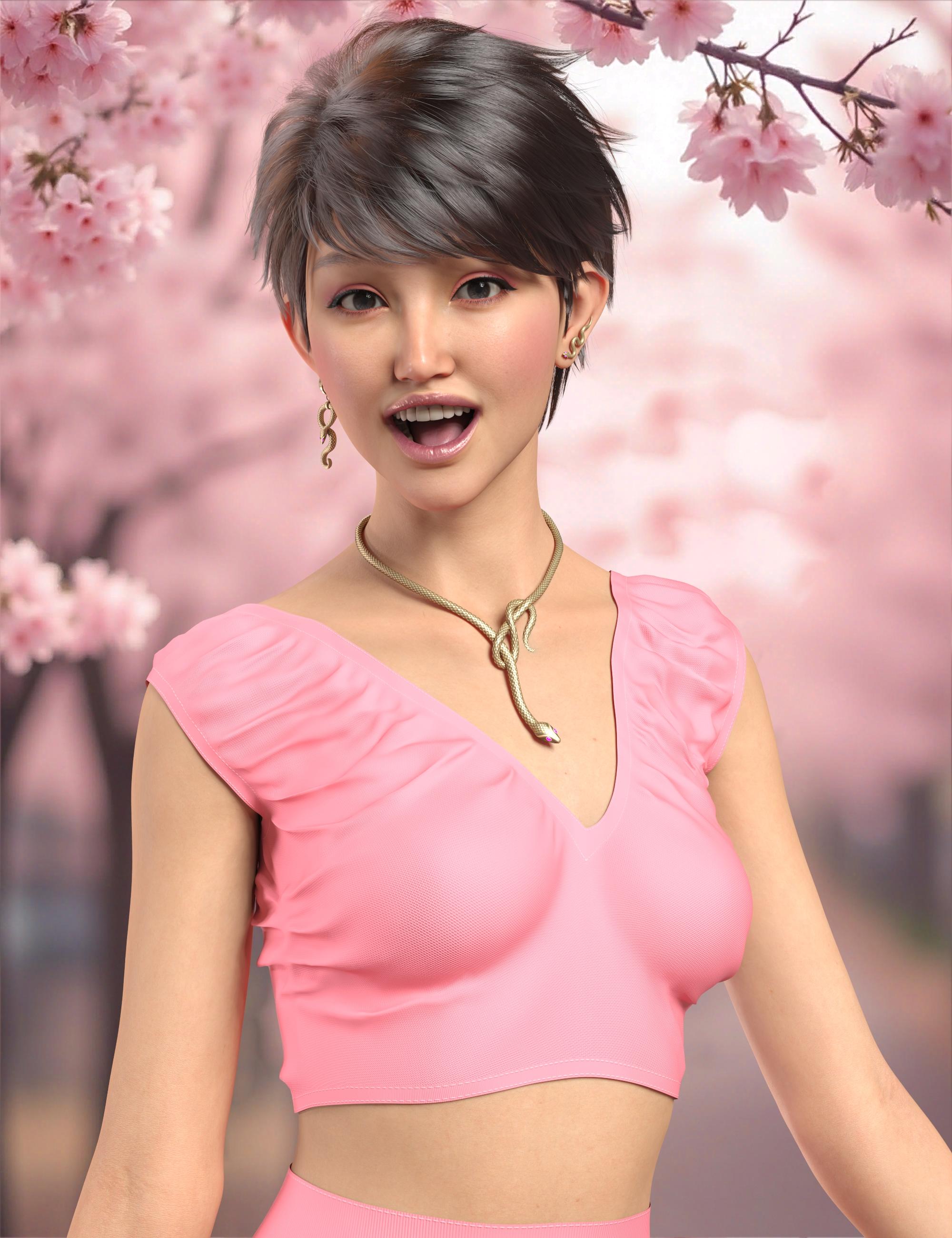 I tried a view with some of the included necklace morphs and earrings in this render.