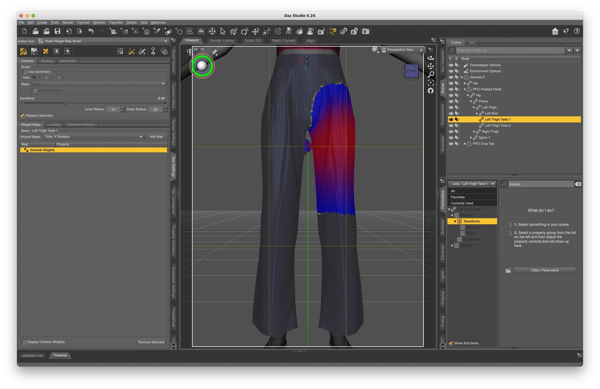 3) Test figure's thighs Side-Side rotations, there should be no big issue (screenshot 3). Fix cbs on the pants if needed. Then save them as a Wearable Preset or a user's Figure Asset.