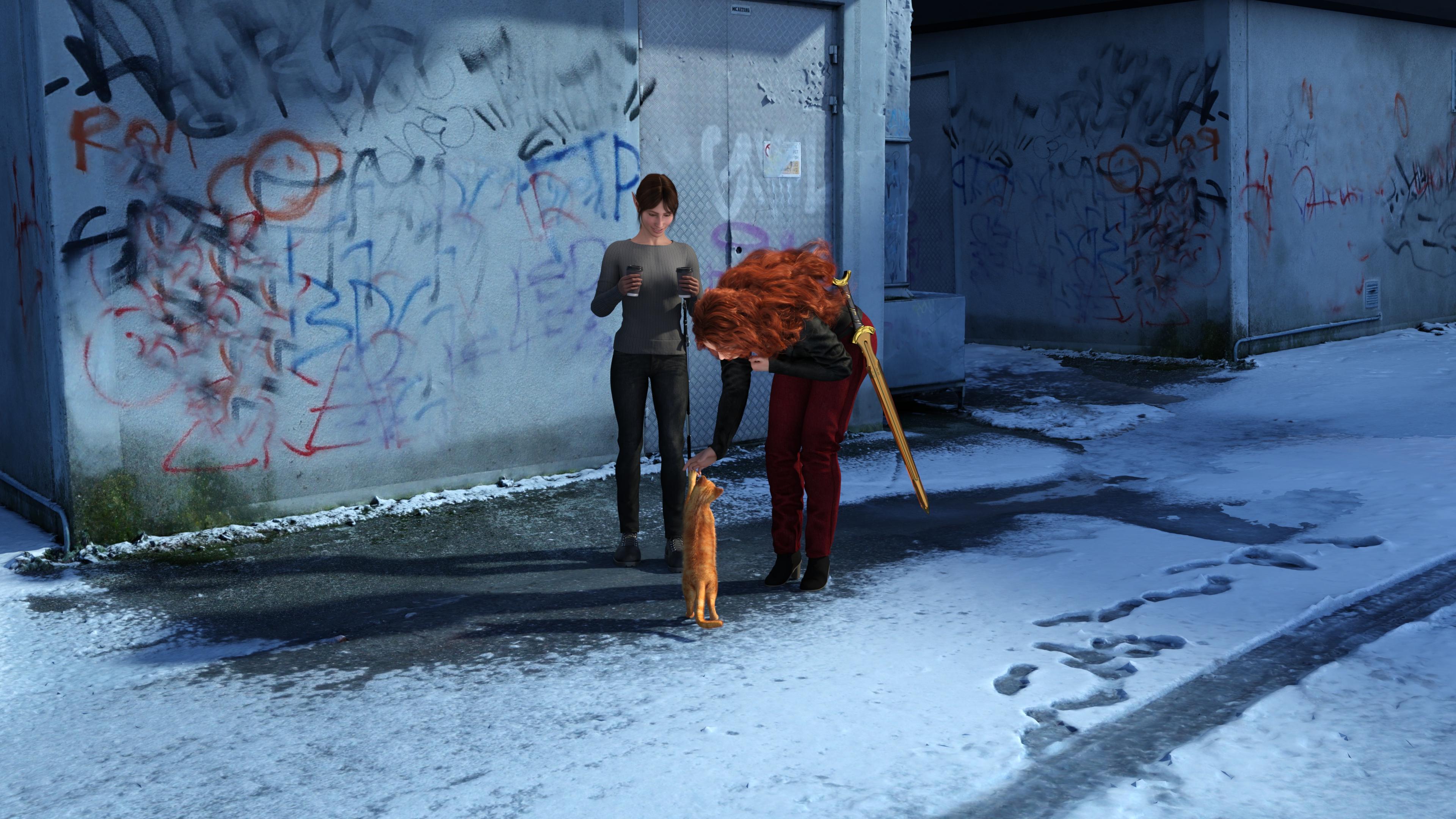 But once Kira showed up, the entire composition changed. I still really liked what I had, though, so I ported it over to Grace's bedroom and gave her a homey moment with her cat as a sort of apology for the manticore thing. And also because it was finally a chance to show off that half of her bedroom, which I worked stinking hard on.