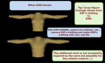 In putting the Cross-Figure utility to work it happens that yes most certainly the clothing OF one figure will simply fit onto the opposite one however for actually making clothes IMHO, it's nice to have "male" and "female" clothes as such. It's not hard ... using the Cross-Figure one can quickly get the clothing that fits the opposite; HIDE the person figure and export out the .obj file. Then unhide the person figure; can delete from scene the old clothing piece; import in the newly shaped .obj file and make clothing as usual.