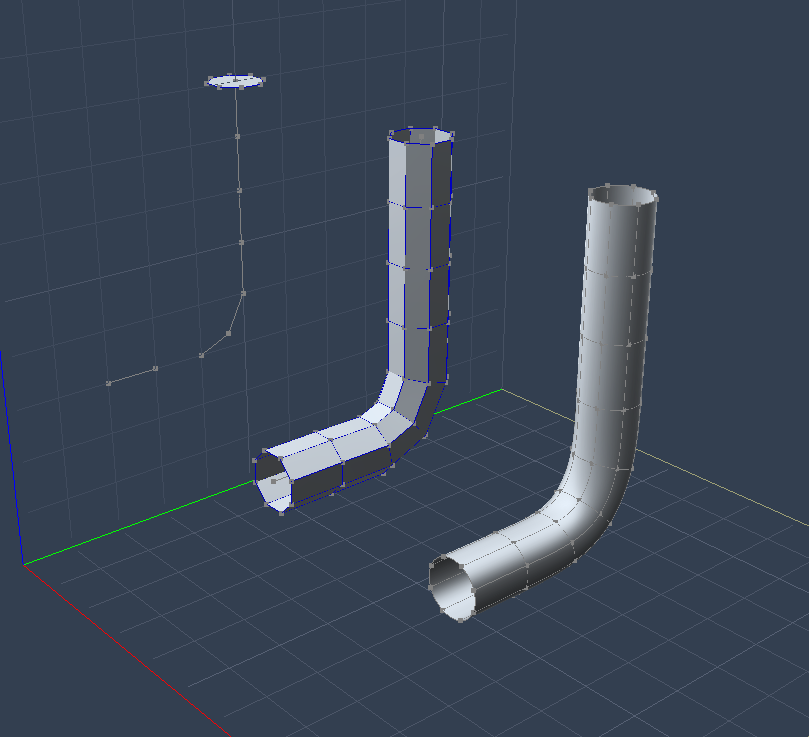 I'm trying to figure out simple things with the vertex modeler. It is a new world to me. But can I ask how you made the small tube extension blend or join together where it makes contact with the larger tube? In my drafting software I can do that with the fillet tool but the fillet tool here in the vertex modeler does not seem to do me any good.