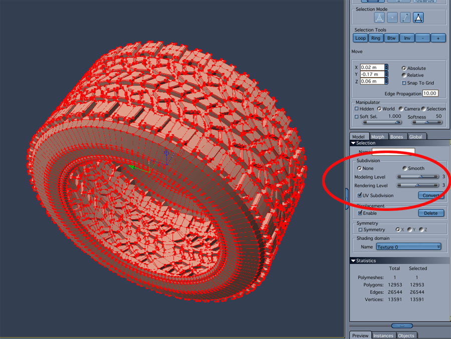 And, unless this is a hero prop, you're putting all that detail into something that's likely to be in the background and largely hidden. If that tyre was on a truck, I'd bet you'd be hard pressed to notice the sub-d in a render, at least more than one level.