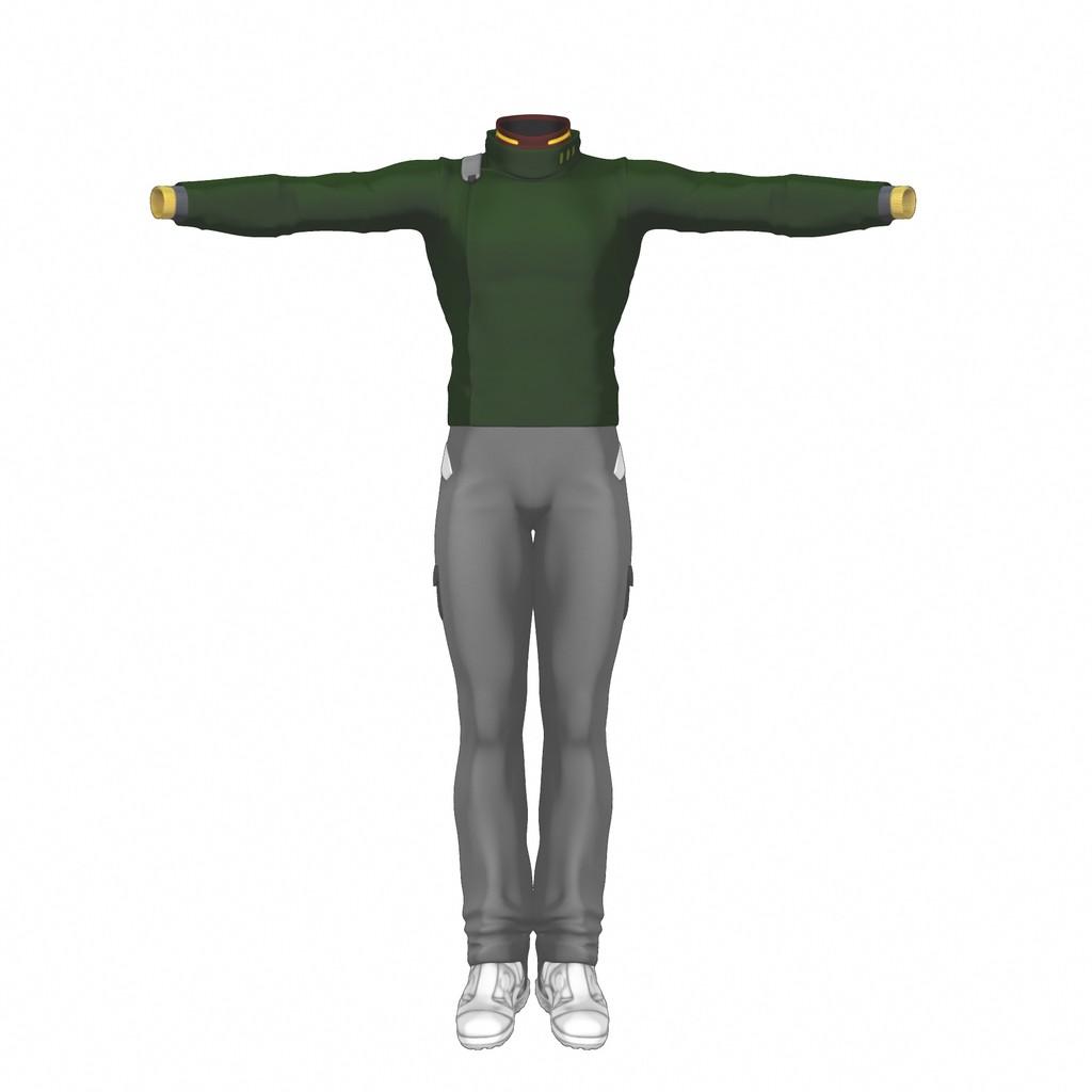 First, the original Girl, converted using my Toon style, a male version of Uzilite's New Adventure (with the top tinted green), a retro blaster prop and a render of the character in action.