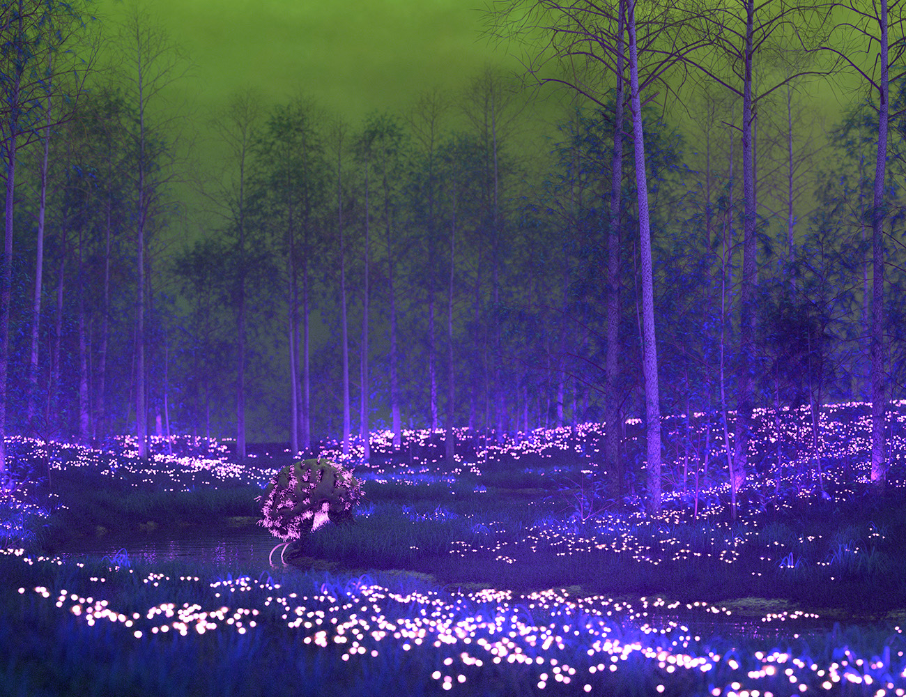 I'm going for a Van Gogh type color scheme here. The HDRI is aptly named Sunflowers, from HDRI Haven. This image combines UltraScenery, UltraTree, and UltraScatterPro. They all work well together.