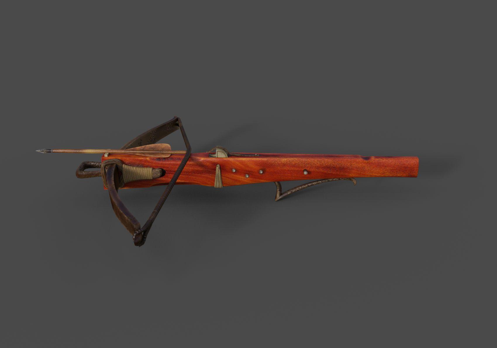 It might be a bit elderly by modern standards, but it still looks good (and authentic for the period!), the materials convert to Iray well, and there are useful morphs for drawing the string and raising the little clip that clamps on to the end of the crossbow bolt.