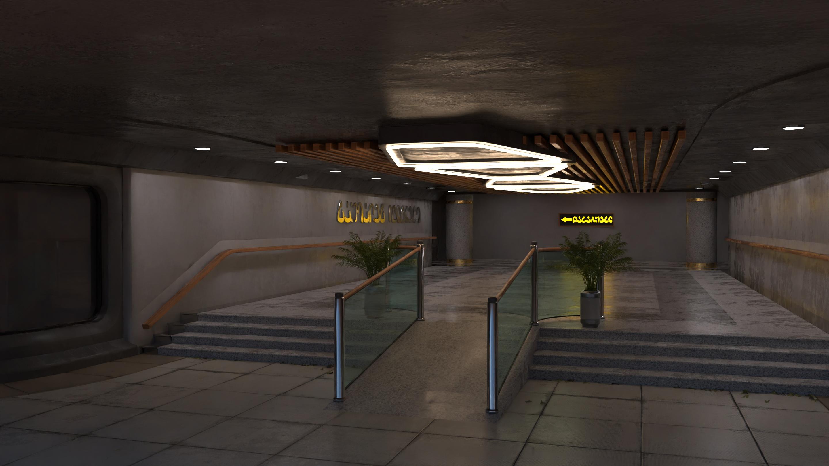 Sharing my experience of customising Urban Sprawl 3 and The Streets of Utopia.Next additon to the set was doors; only one of the buildings in the central area had any doors! This is a nuisance as depicting people actually using the place inevitably involves entering and leaving buildings, and even if it doesn't open a proper entrance makes such images much more convincing. This image depicts the most difficult of the entrances to build; the geometry of the building made it tricky to work out how to go about it, though once it was worked out it wasn't hard to actually model it. The door opens inwards and outwards and has Blender contraints added to prevent it swinging too far, like all the doors I added. I may add logos or a clock in the circle above the door.