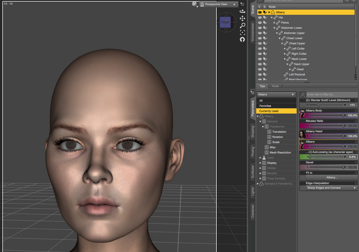 Personas comprando irreconocibles - Unrecognizable people buyingIt looks to me as though your figures are loading with another face morph added in. Your versions of the characters all have similarities around the lips and eyes. With your figure selected, look in the section called Currently Used under the Parameters tab. I don't have Ai to use as an example, but here's Albany by the same artist. You'll see that under Currently Used, there's a nail morph by Mousso, Albany's full morph, head morph, body morph, and navel morph, all dialed in at 100% (which is how it should look if you load a character directly, rather than load plain Genesis 8 Female and dial in those shapes by hand).