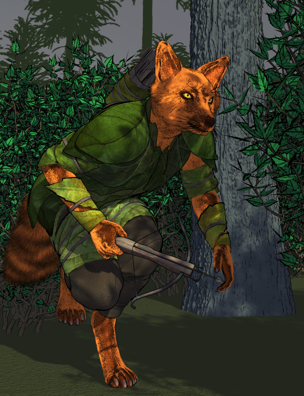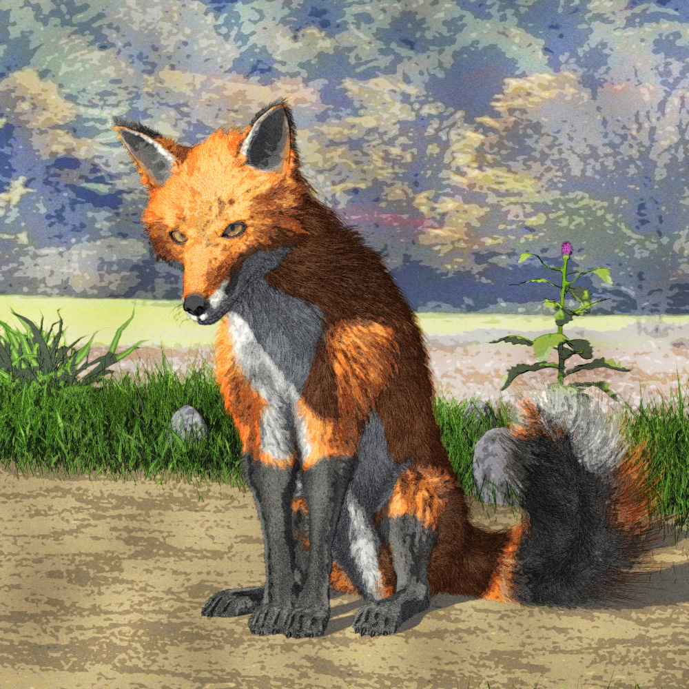 This is my vulpine. So, again, texture mapping doesn't work for dhair, but in this case a single color works fine (if I wanted I could take the time to separate out zones and create multiple fur items, but I didn't feel like it)