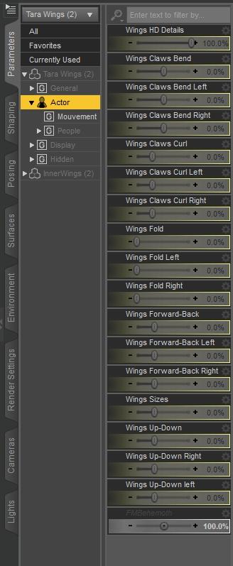 Obviously, the morph that the Tara 2 figure has to accept the wings is not applied, but the pose controls are maintained doing it this way, and I think the wings are a great match after being scaled up: