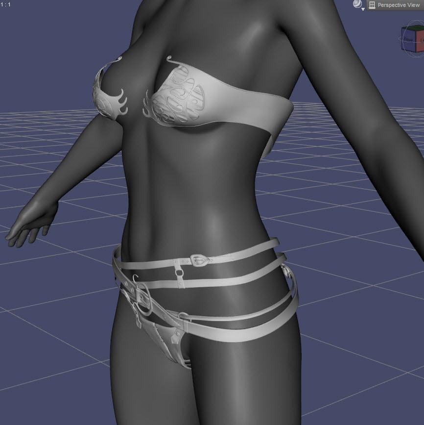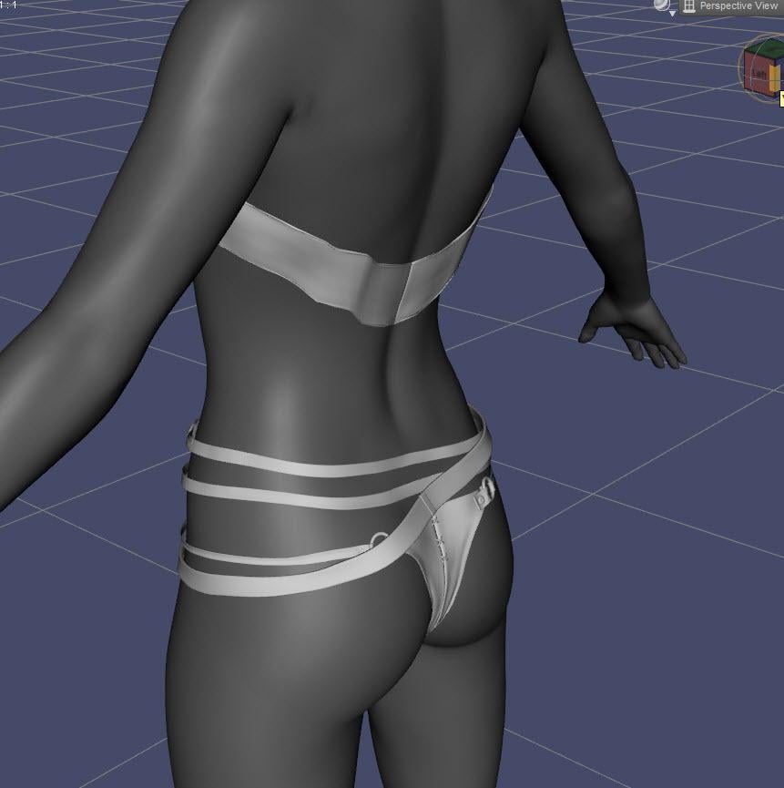 After playing around with the morphs plus the adjustments that come with Elf Age, I did achieve better-looking hip straps than before. There is some warping in the front of the panty, though, along with some space between the lower belly and the straps.