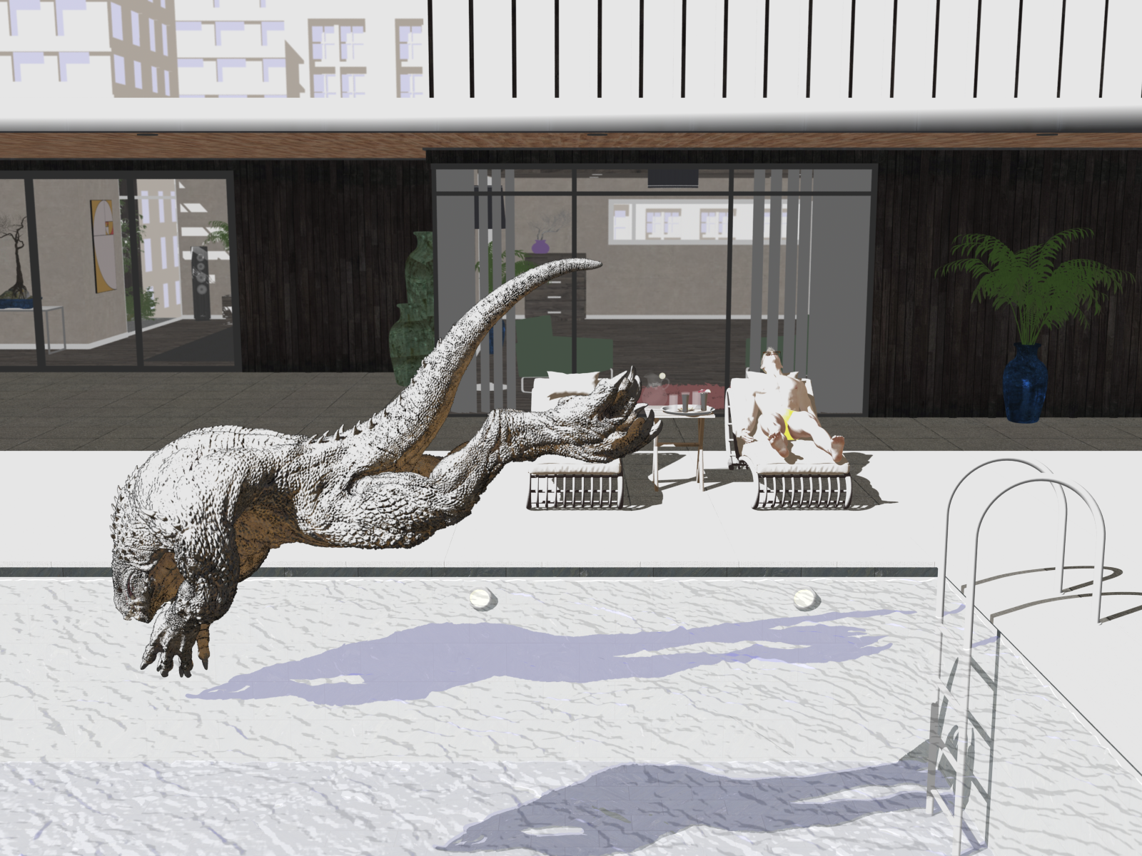 Good call on the lizard, thanks, I wanted to keep the texture detail in the foreground, but the difference between the figures was too much. I had an extra outline turned on for him as well that I didn't realize, and fortunately enough detail was in the displacement that I was able to keep the main textures in place and still simplify it a lot.