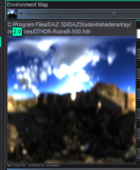 However, for the HDRI that I created with Vue, the Ruins HDRI settings don't work; here is a comparison of what I obtain in Blender and in DS with the Ruins HDRI settings: