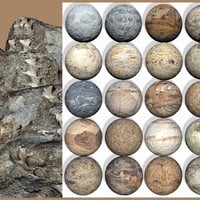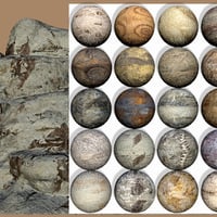 60 one-of-a-kind Bryce materials of fossilized rocks for Bryce 7 or higher.. No specular value has been added in the mats. If you need some, just click on the slot 'Use Texture A value' of Specular value in Material Lab to give a wet look to your rocks or stones