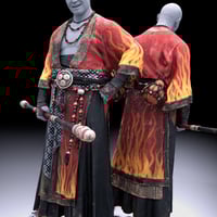 Four Elements: Texture Expansion for Wise Monk HD adds 4 complete texture sets to the Wise Monk HD clothing set. All these textures had been designed with the combinations in mind. You can mix and match all of them, and you will be able to combine your unique outfits to dress Genesis 9 figures!