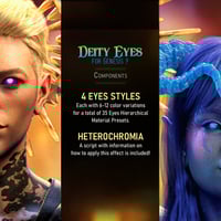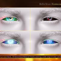 FPE "Deity Eyes for Genesis 9” consists of four distinct Godly Eyes Styles (with six to twelve variations each, for a total of 35 Iray Hierarchical Material Presets).