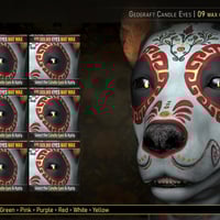 A Left and Right Eye Geograft adds two small candle props inside the eyes for a striking & artistic effect. For ease of use, they are both applied via a Wearable Preset. You must delete the original eyes before applying. Instructions are available via a handy script.