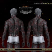 Please note that only textures are included in this package. While this product works best with the base product, as the morphs add depth to the carbonized texture, the textures here can still work on their own. Therefore, the base product is not strictly required.