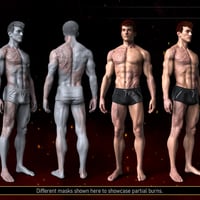 Showcase those who have been through hell and back with our second set of burns: FPE HD Body Burns for Genesis 9. Craft their scars with precision using HD Morphs & meticulously detailed textures applied via a Geoshell for a non-destructive workflow. Tell a story of survival and resilience made flesh.