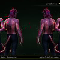 You can choose from 19 alternate colors for customization. You can also stack the Masculine and Feminine Geoshells for extra options, using the LIE Masks to decide where the mark of a dragon should be visible in your characters.