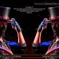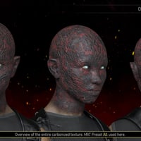 Please note that only textures are included in this package. While this product works best in conjunction with the base product, as the morphs add depth to the carbonized texture, the textures here can still be effective on their own. Therefore, the base product is not strictly required.