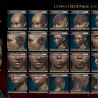 40 are provided to build your burn, with two different masks per placement to ensure a more natural look by avoiding symmetry. Eight masks for the pre-combined shaping presets and masks covering areas not covered by the HD Morphs are also included.