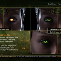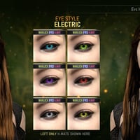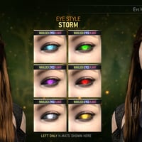 "FPE Warlock Eyes” consists of four Fantasy-Styled Eyes that look thematically consistent. Each Style comes with six color variations. Embracing the flexibility of Genesis 9, each eye Hierarchical Material Preset comes with two additional variations for a Right Only or Left Only application for a Heterochromia look.