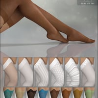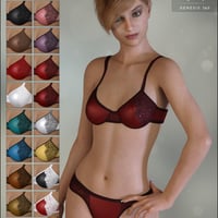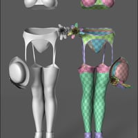 The hat can be loaded parented to the head with a rigid follow node so it automatically follows shapes, or by itself as a prop. The corsage loads at zero or on the right wrist in the full set wearable preset, it can be placed anywhere you'd like. The shoes come in conforming versions for Genesis 3 Female and Genesis 8 Female as well as separate left and right props for decorating. The lingerie models are designed very flat and skin tight to be used under other clothes without poking through, and especially with D-Force clothing so the edges don't catch during simulation.