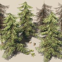 Included are separate low poly assets: a pine tree, dried tree, and two unique trunks. All forest elements are instanced, ensuring optimized performance and quick render times, even in complex scenes.