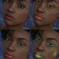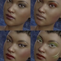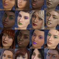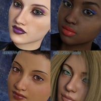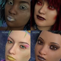 The Fuseling Ultra Layered Makeups is a set of layered image editor presets designed for use with many Genesis 3 Female and Genesis 8 Female characters. This gives you a set of 100 each eye shadow, blush, and eye liner presets, 60 lipsticks, and 50 lip overlay presets that can be mixed, matched, and layered together for thousands of possible looks.