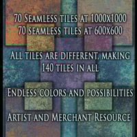 Contains 70 Seamless 1000x1000 tiles and 70 Seamless 600x600 tiles. All tiles are different, meaning you get 140 tiles in all and endless color combinations.