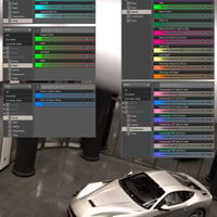 There are 140 material zones organized in to 10 groups. The 3Delight version of the car uses the Uber Surface shader that comes with Daz Studio and the Iray version of the car uses both the DazUber Iray shader and some of the Nvidia MDL shaders that come with Daz Studio.