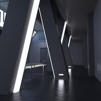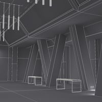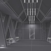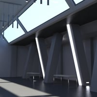 Future Interior Vignette features a detailed sci fi minimalist theme interior scene with benches, unique pillars and ceiling lights, Optimized for Studio with Iray.