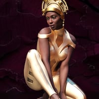 This headdress fits nearly all Genesis 9 shapes and has extra morphs for ears (except elf ears), neck and head to fit it to almost any figure you wish.