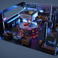 The Futuristic Urban Bar is built with realistic textures and a stunning realistic lighting setup.