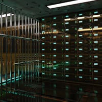 Discover the ultimate futuristic vault with a sleek touchscreen panel, secure door, and gold accents for advanced protection and style.