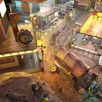 - A futuristic western environment featuring different style buildings and props.