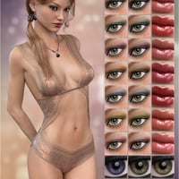 The head and body for Finley are uniquely custom sculpted in Zbrush, and the skin was created using high quality photo references for depth and detail. She also comes with custom sculpted square nails as well as longer upper lashes that can be dialed to your desired length. Furthermore there are custom nipples that will apply when the main morph dials are applied. There is also a Sexy Lips expression included that can be applied via the library or using the specially created dial.