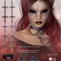 You will also received Livia's amazing Jewellery set, containing of a choker, earrings, bangle and ring. These will work on all Genesis 3 Female(s) characters and will add a nice bit of Gothic to any render.